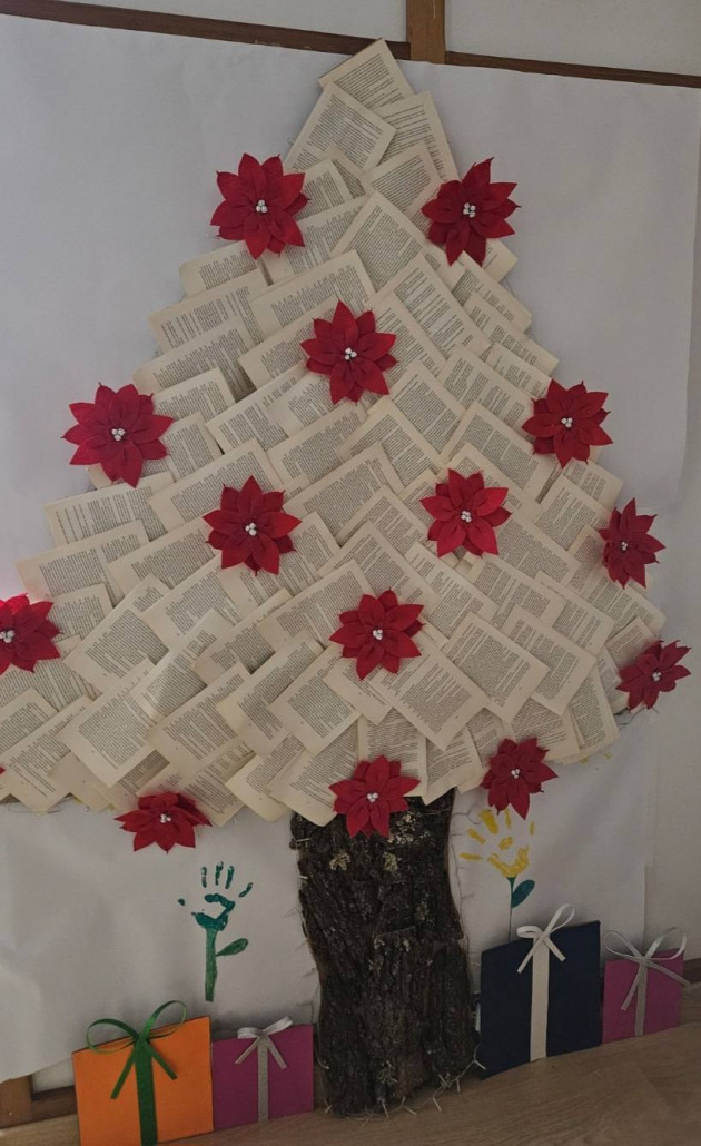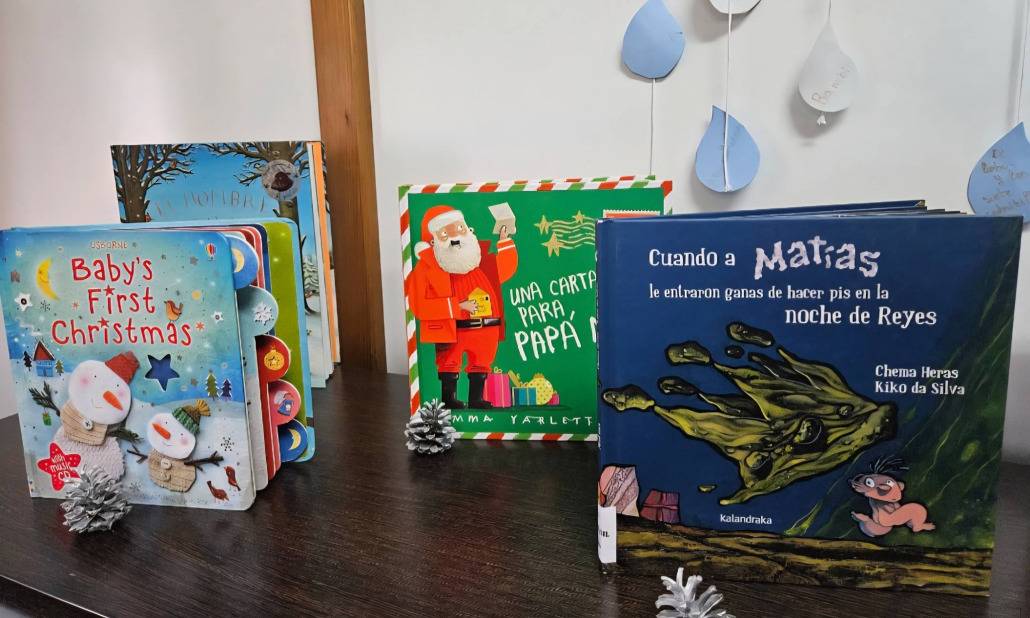 La Biblioteca también se ha preparado para recibir la Navidad con un Portal de Belén y un Árbol de Navidad muy originales, además de otros adornos hechos a mano y muchos cuentos de argumentos navideños.