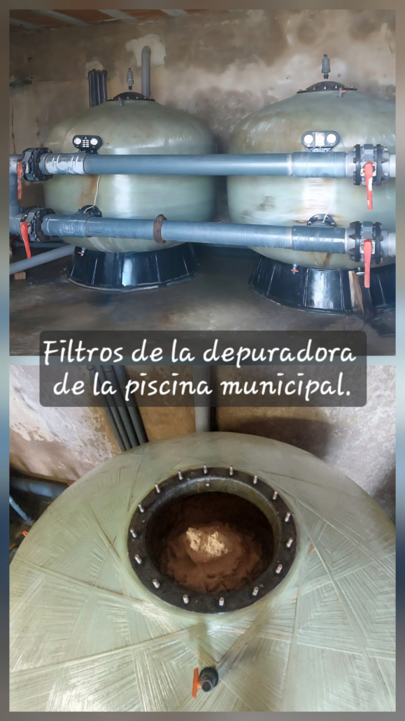 Tras la decantación el agua se conduce hasta los filtros, cuya principal función es actuar como una barrera final o intermedia para eliminar impurezas físicas, materia orgánica y agentes contaminantes tras los procesos de tratamiento primario. El año pasado, se cambió la arena y el carbón activo de los filtros del depósito municipal y también de los filtros de la piscina municipal. El coste de la obra fue de 16.707, 06 euros.
