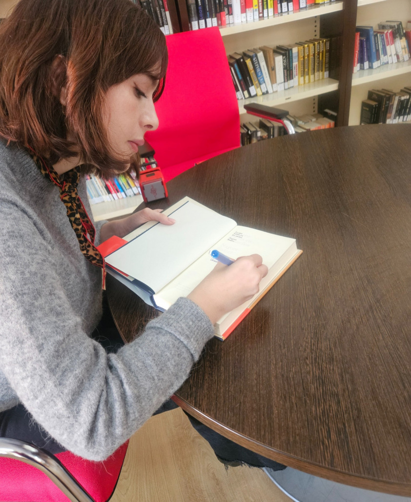 Hemos disfrutado de una charla coloquial, que ha hecho las veces de entrevista, dirigida de manera impecable por nuestra bibliotecaria Ana y, en la que la autora, sin duda, ha conseguido despertar la curiosidad de los presentes para leer esta nueva novela.
