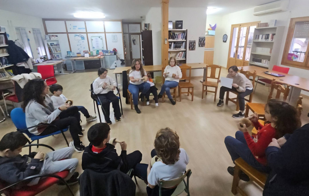 Os mostramos unas fotografías del taller, que ayer tuvo lugar en la biblioteca, para aprender a tocar el mortero. Los niños, que aprenden rápido, hicieron sus pinitos en esto de tocar el mortero y, debemos decir que, no lo hicieron nada mal.